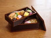 女性に人気の飛騨春慶の弁当箱です。上段の中には自由に配置できる仕切りが付いています。